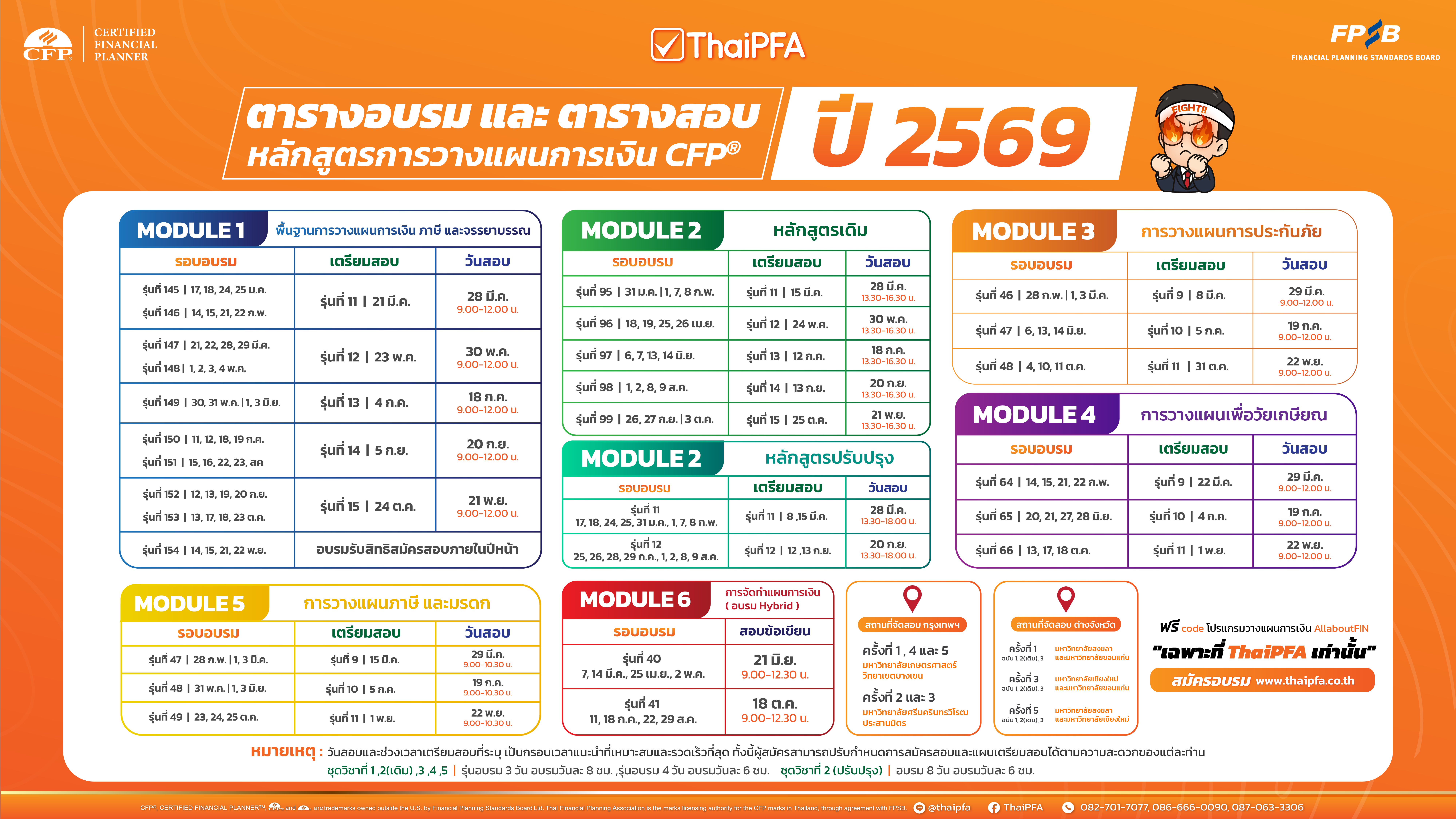 ตารางอบรมและตารางสอบ หลักสูตรการวางแผนการเงิน CFP ประจำปี 2569