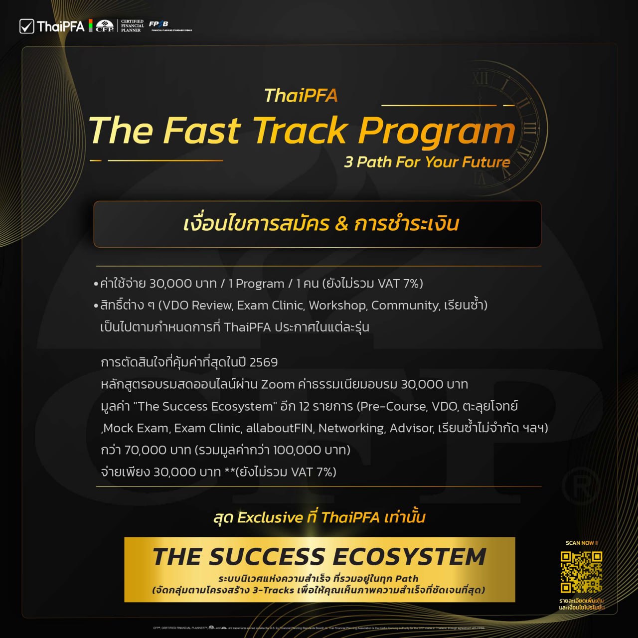 แพ็กเกจเร่งสปีดสู่คุณวุฒิวิชาชีพที่ปรึกษาการเงิน AFPT และ นักวางแผนการเงิน CFP พร้อม “ระบบนิเวศแห่งความสำเร็จ” (The Success Ecosystem)
