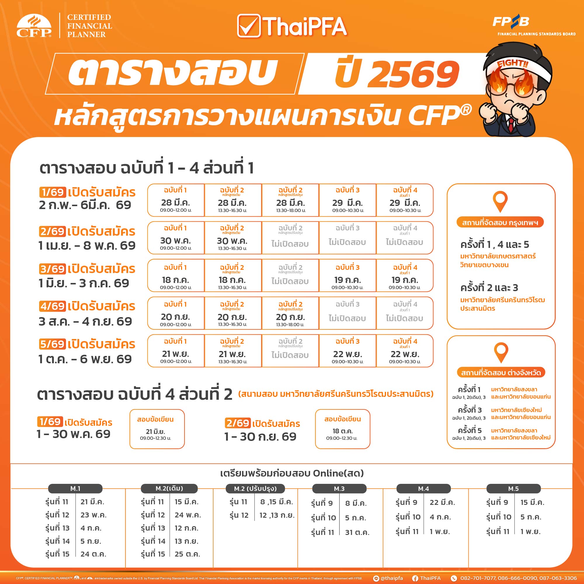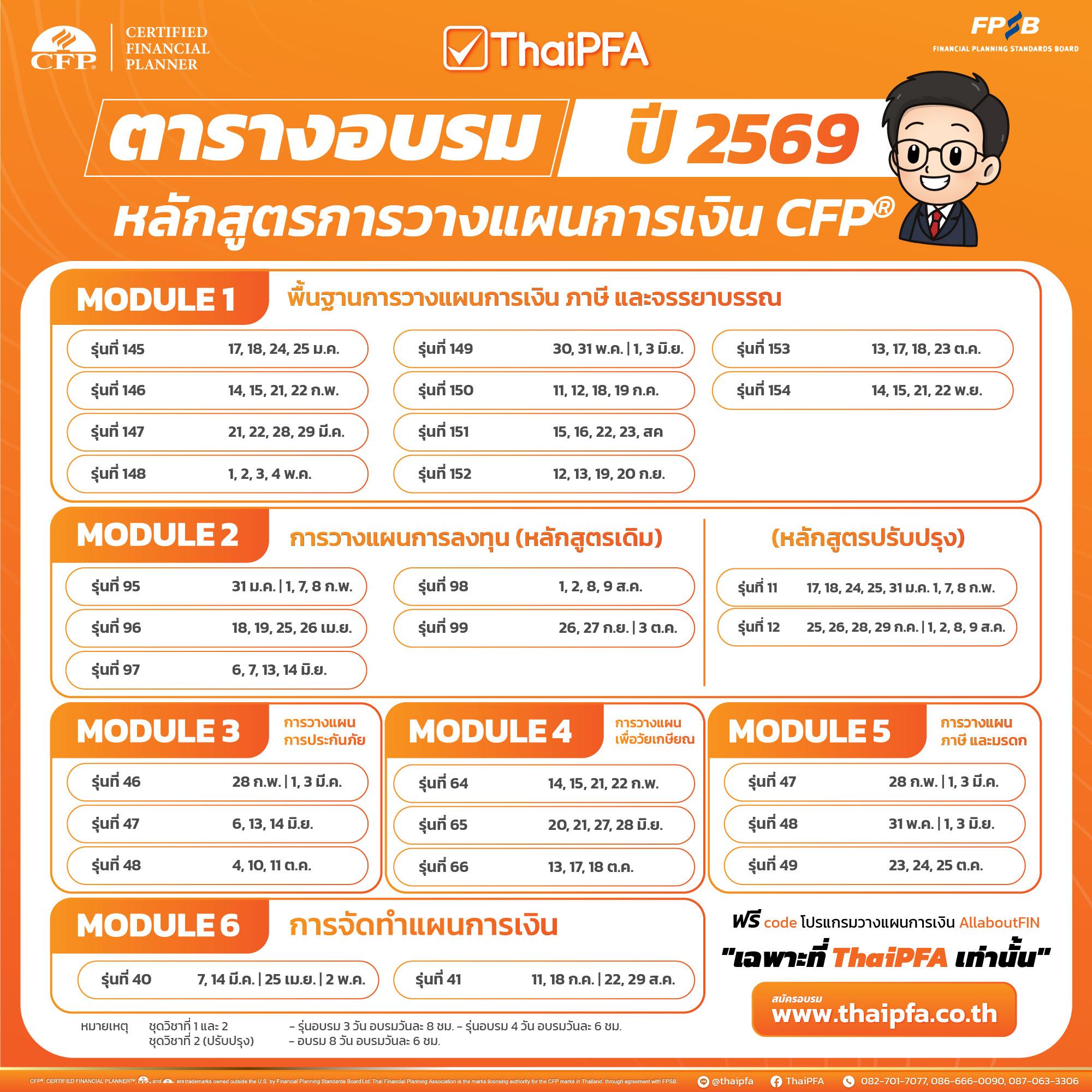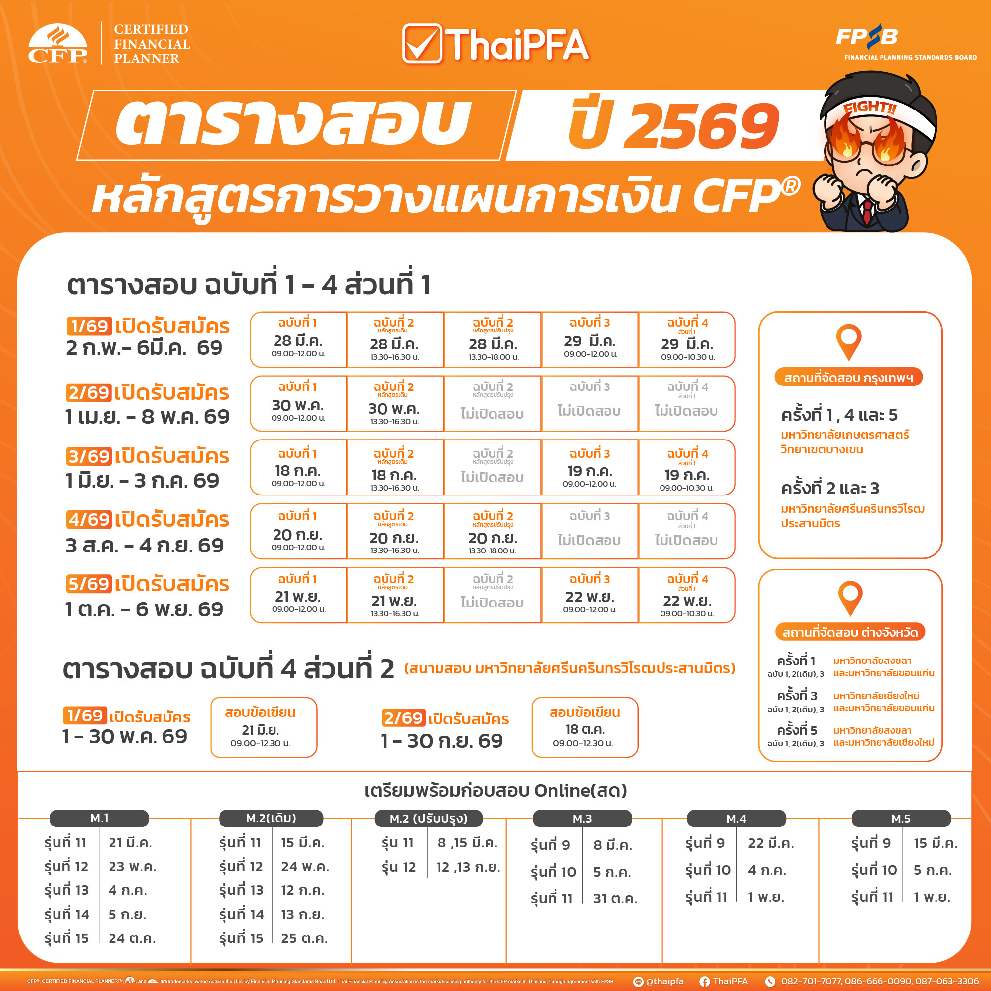 ตารางอบรมและตารางสอบ หลักสูตรการวางแผนการเงิน CFP ประจำปี 2569